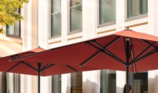 Unser Sonnenschutz bietet Gästen Schutz vor Sonnenstrahlen und Regenschauern, wodurch sich die nutzbare Fläche im Freien erweitert. So können Sie auch bei wechselhaftem Wetter eine konstante Bewirtung gewährleisten.